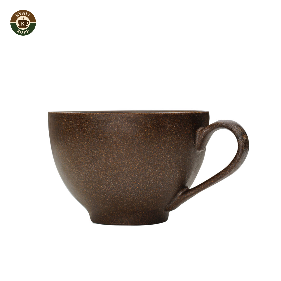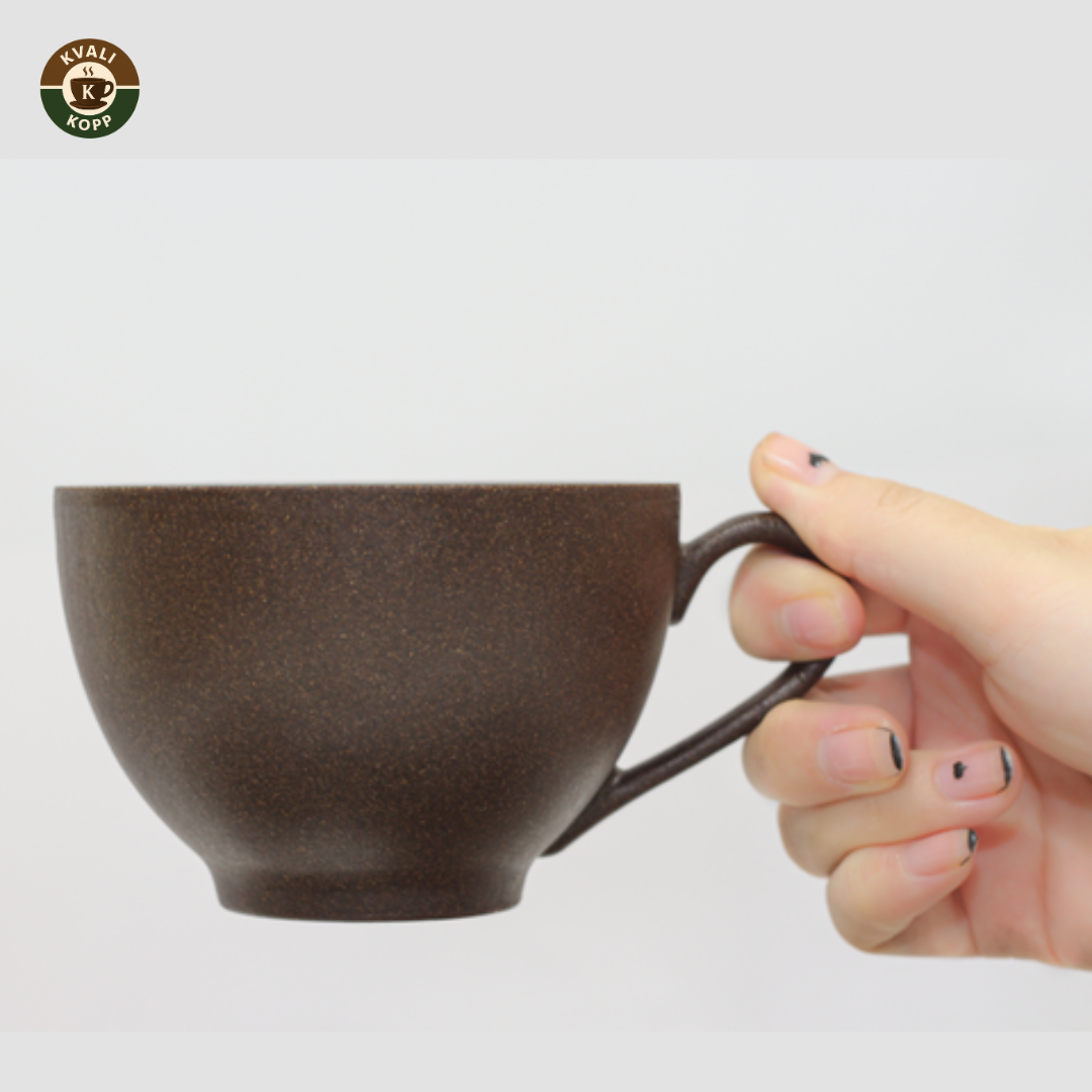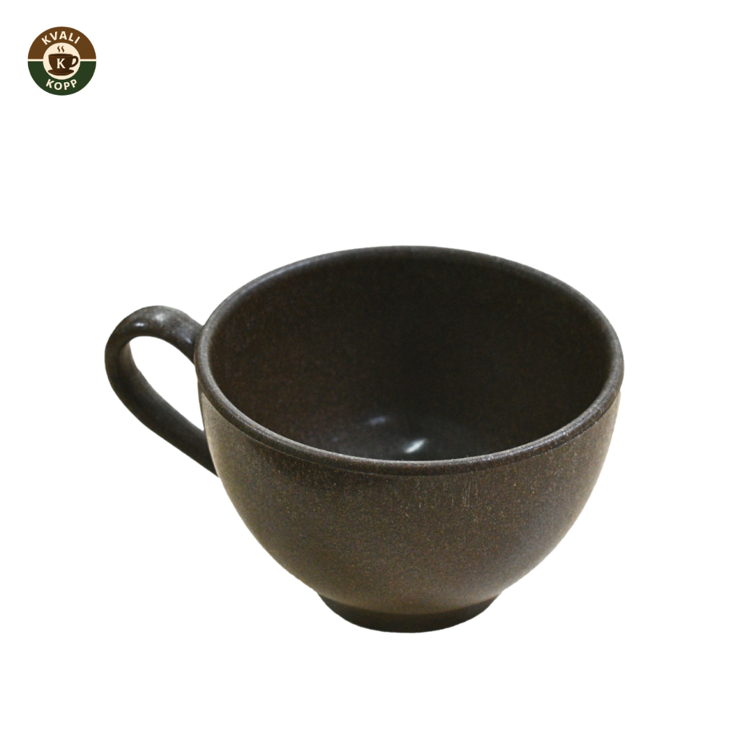 Vår elegante Latter-kopp er perfekt for din morgenkaffe. Laget av resirkulert kaffegrut med en behagelig tekstur og holdbar konstruksjon. Den holder varmen lenger enn tradisjonelle kopper, samtidig som den er 100% bionedbrytbar. Dette er ditt grønne valg for mindre plast.