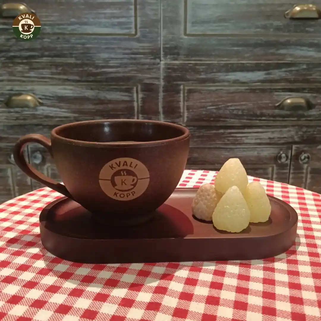 Dette er et eikebrett av høy kvalitet og er et ideelt trebrett til mat. Det er egnet for å vise frem desserter, snacks og kaffetilbehør. Med sin elegante form er det også veldig vakkert for å dekorere bilder eller som et dekorativt element på kjøkkenet.